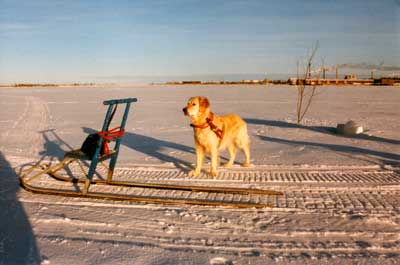 Vetokoira lepotauolla.