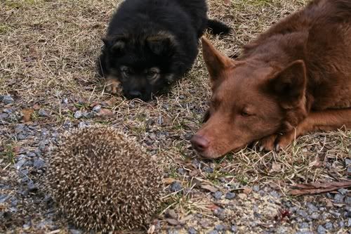 04.05.2011 Romu tutustuu siiliin Loimu-tädin opastuksella. ;)