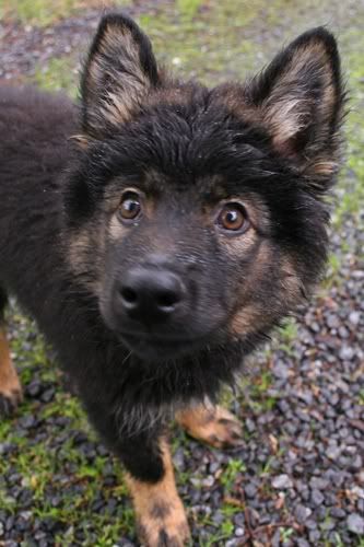 Suloinen, pieni, märkä koira.