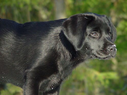 Hippunen lunta kuonolla.
